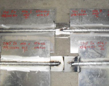 鋁合金是高速船的主要結(jié)構(gòu)材料,鋁合金可以設(shè)計(jì)出更合理的結(jié)構(gòu)形式,減輕重量,提高結(jié)構(gòu)強(qiáng)度。我公司自主研發(fā)的輕型自行門橋等產(chǎn)品均采用了7系高強(qiáng)度鋁合金,因此造船工藝迎來了重大的轉(zhuǎn)換期,選用合適的焊接方法和焊接工藝,有效控制鋁合金焊接變形及焊接接頭強(qiáng)度,公司工法科還為此研制了焊接氬氣保護(hù)裝置和焊接環(huán)境風(fēng)向控制箱等科技含量很高的工裝。我們?cè)诮宇^設(shè)計(jì)、焊接工藝參數(shù)等方面進(jìn)行了大量的焊接試驗(yàn)。經(jīng)過一代一代的努力,積累豐富的數(shù)據(jù)和經(jīng)驗(yàn),外觀成型和理化試驗(yàn)后機(jī)械性均符合標(biāo)準(zhǔn),已編制出準(zhǔn)確的7系高強(qiáng)度鋁合金PWPS,形成正式的焊接試驗(yàn)報(bào)告(WPQR),并制定出具體的現(xiàn)場焊接工藝,將形成工藝標(biāo)準(zhǔn)。